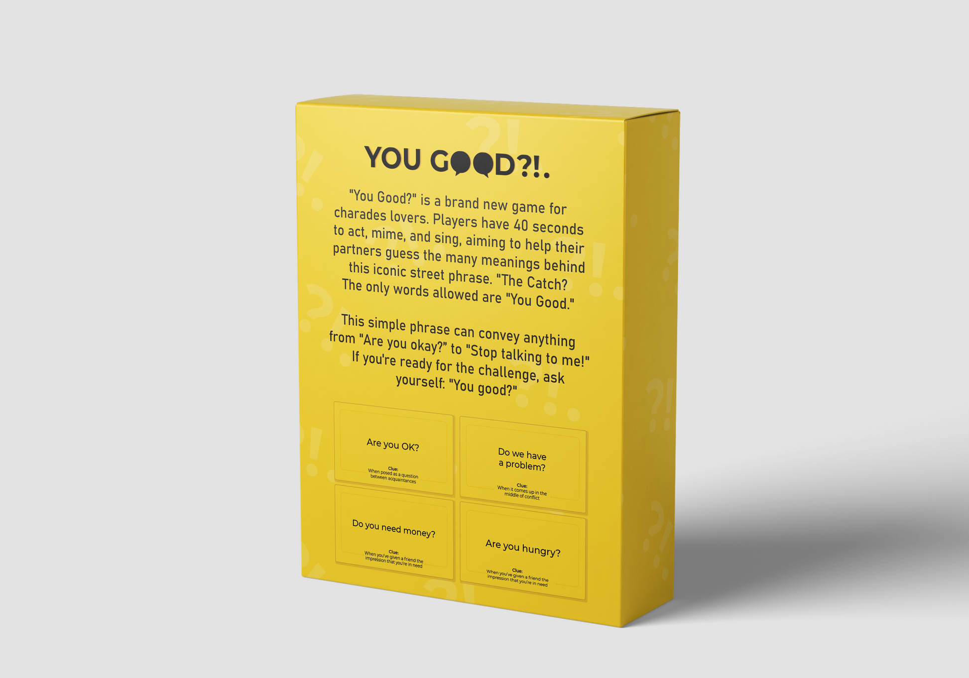 "You Good?" is a game where players guess what you mean, using only the phrase "You good."